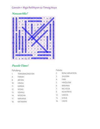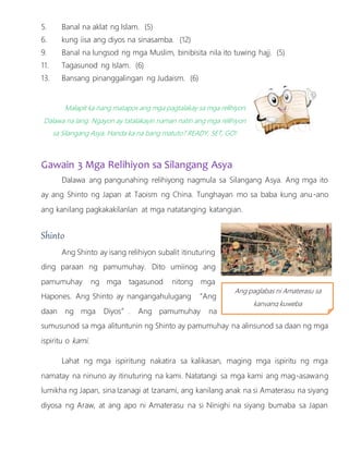 Relihiyon at Kultura Ng Mga Asyano. Gumamit lamang ng hiwalay na papel sa pagsagot sa mga pagsasanay. Bahagi na ng pamumuhay ng mga sinuanang Asyano ang paniniwala sa mga diyos at diyosa.